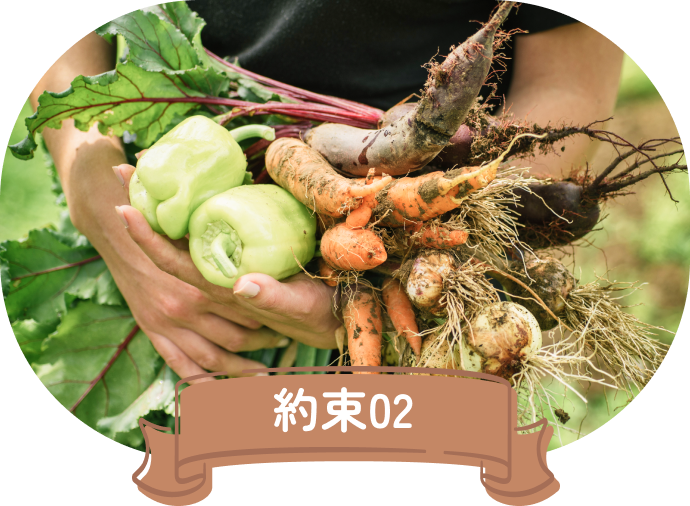 私たちは、生態系への影響を最小限に抑えるため、農薬や化学肥料の使用をできる限り控えます。特に、3年以上化学合成農薬や化学肥料、化学土壌改良資材を使用していない土地で栽培された有機農作物を優先的に取り扱います。また、日本の食料自給率の向上や伝統食文化の継承を目的に、国産農作物を積極的に活用し、環境にやさしい包装資材を使用した商品を選定しています。